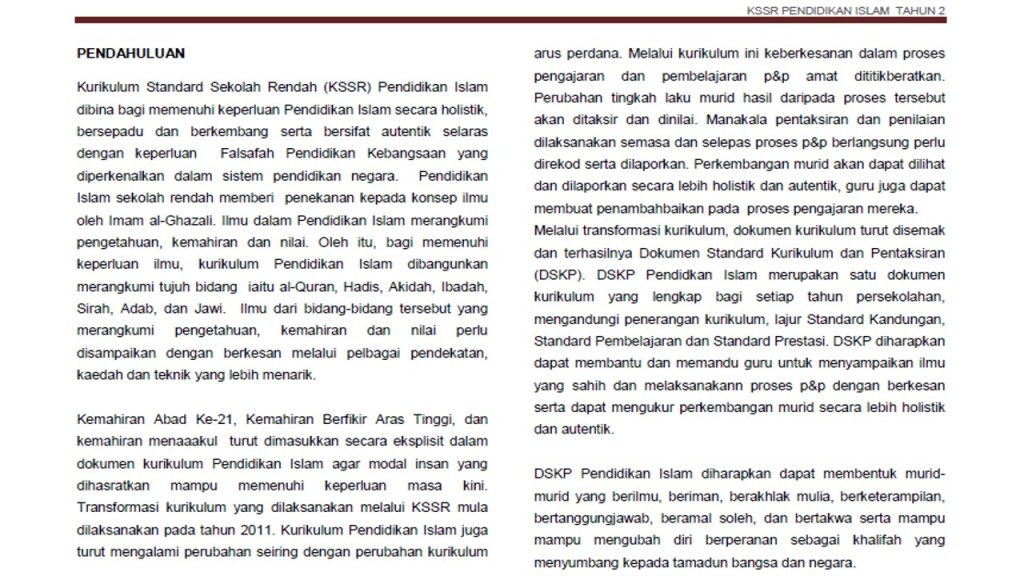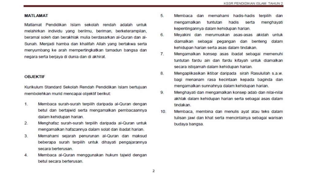 PENDIDIKAN ISLAM KSSR TAHUN 2
